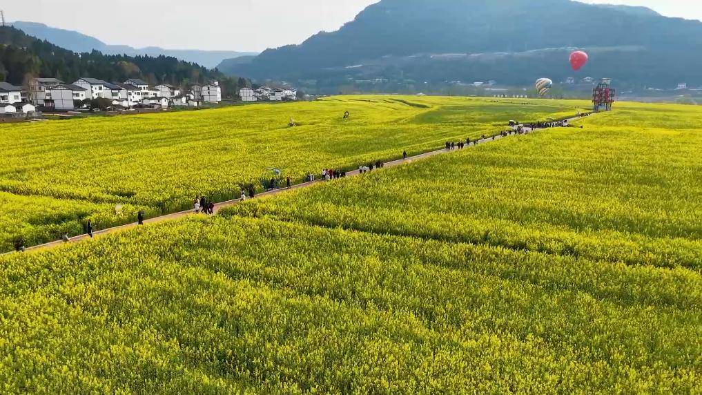 广元(yuan)市朝天区羊木镇东山村千亩(mu)油菜花进入盛花期,当地推出花田暖锅、烤肉,举行乡村音乐会、特点集(ji)市,打造“赏花+美食(shi)+文旅+消(xiao)费”新业态(tai)。