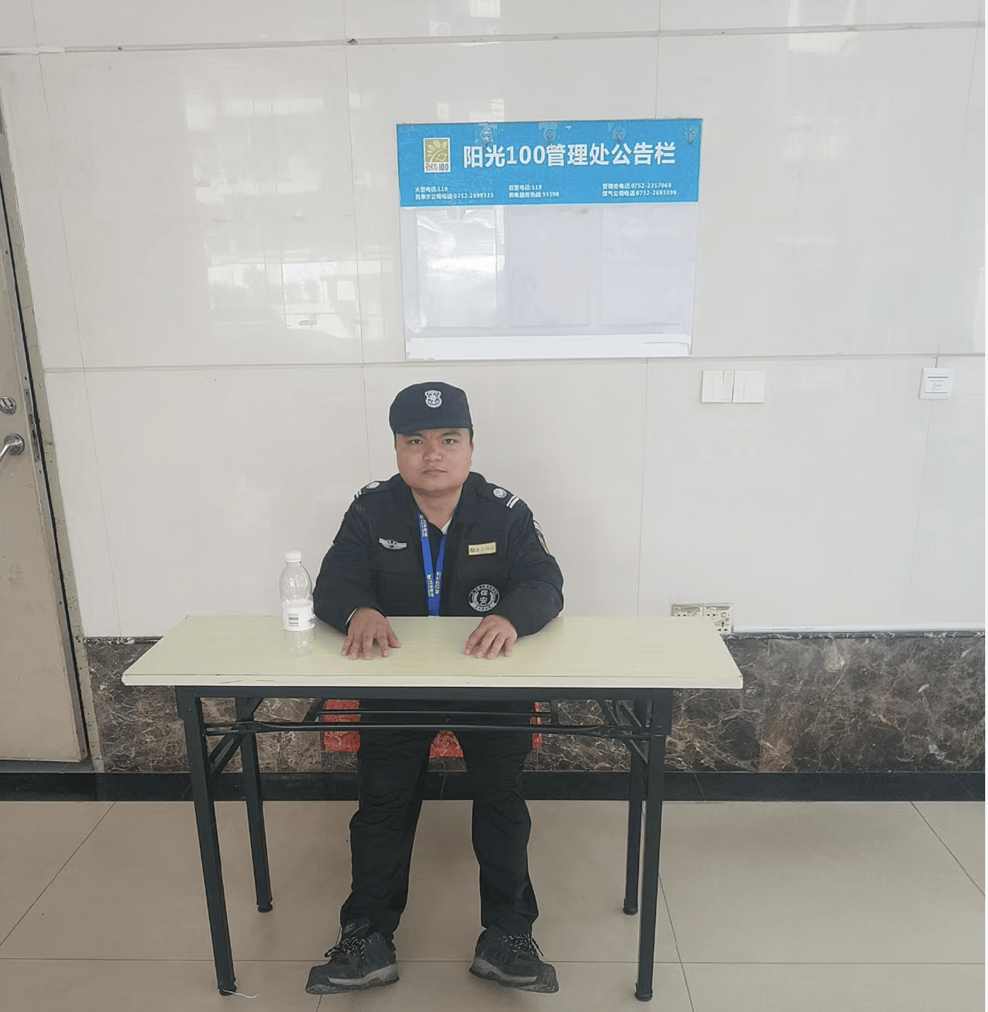 新(xin)物业公司保安在大堂值班。
