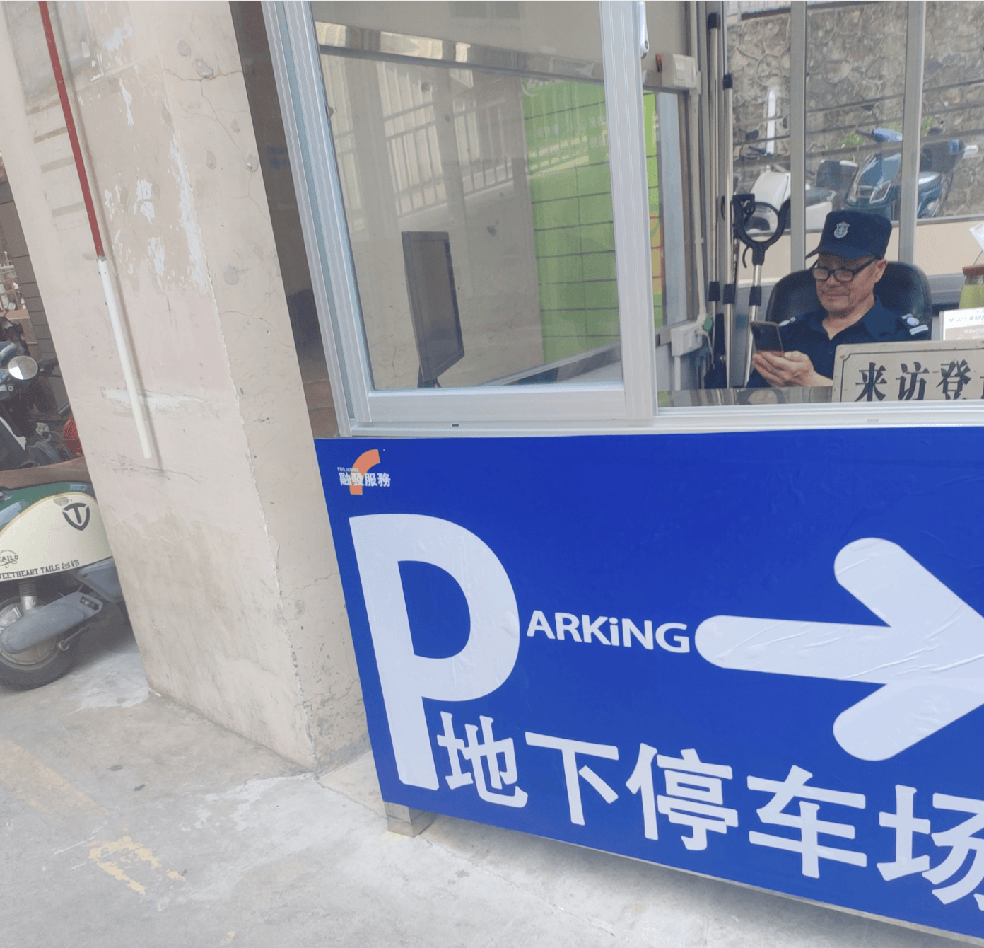小区地(di)下停车场(chang)岗亭还是原物业公司值守。